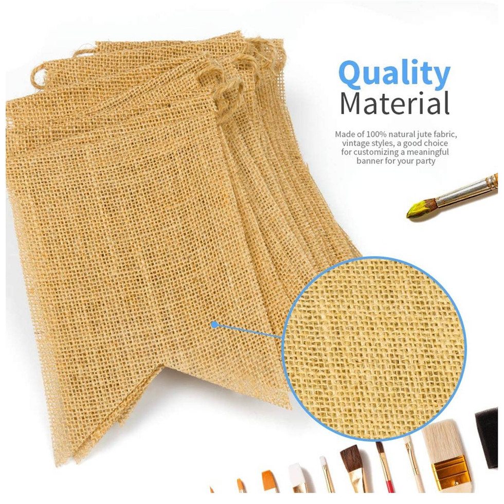 - Quantity : Set of 15, 25 and 48 Burlap Banner | Colors: NATURAL | Size: 7x5 Inch | Material: Jute with Lamination